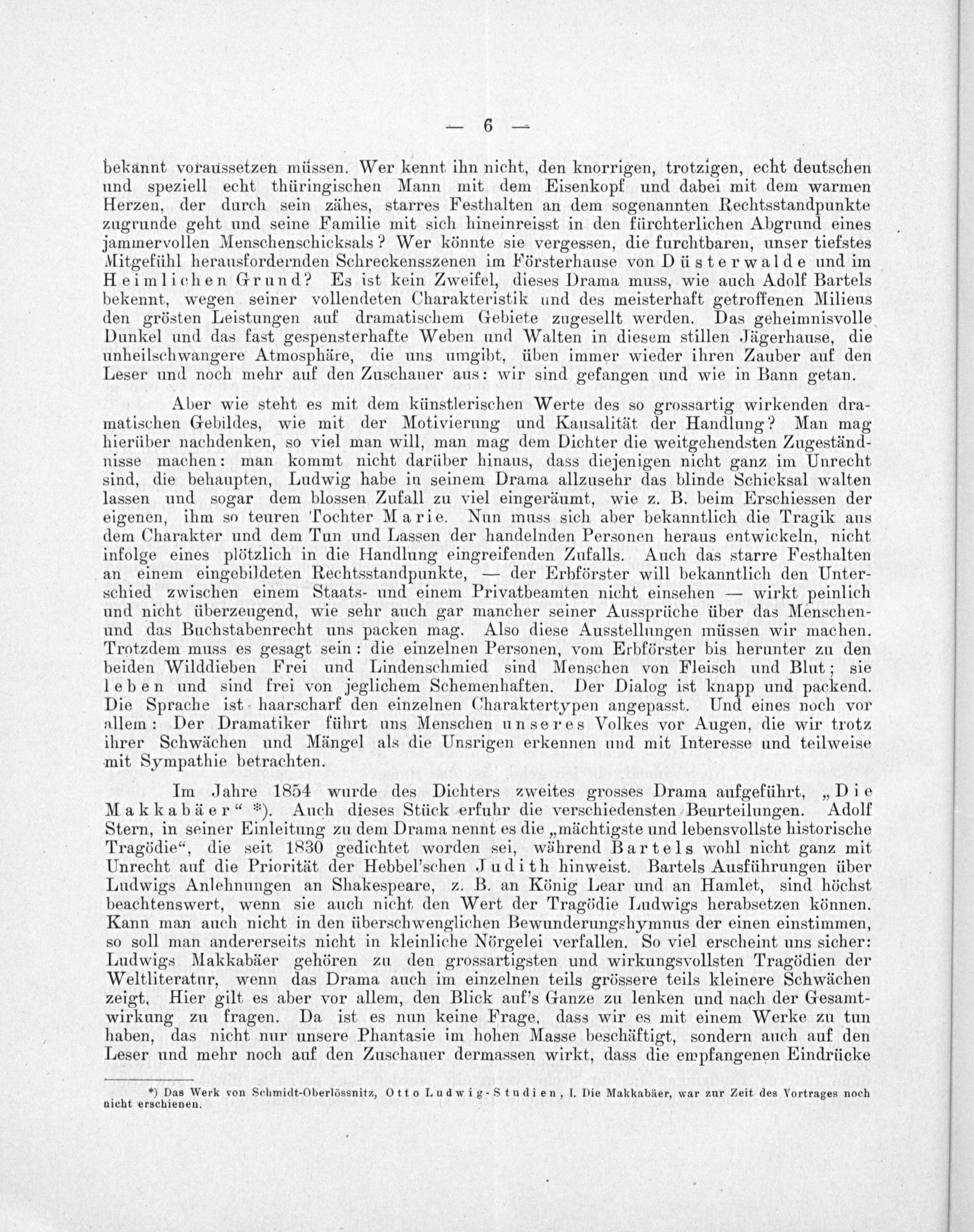 *) Das Werk von Schmidt-Oberlössnitz, Otto Ludwig-Studien, J. Die Makkabäer, war zur Zeit des Vortrages noch nicht erschienen.