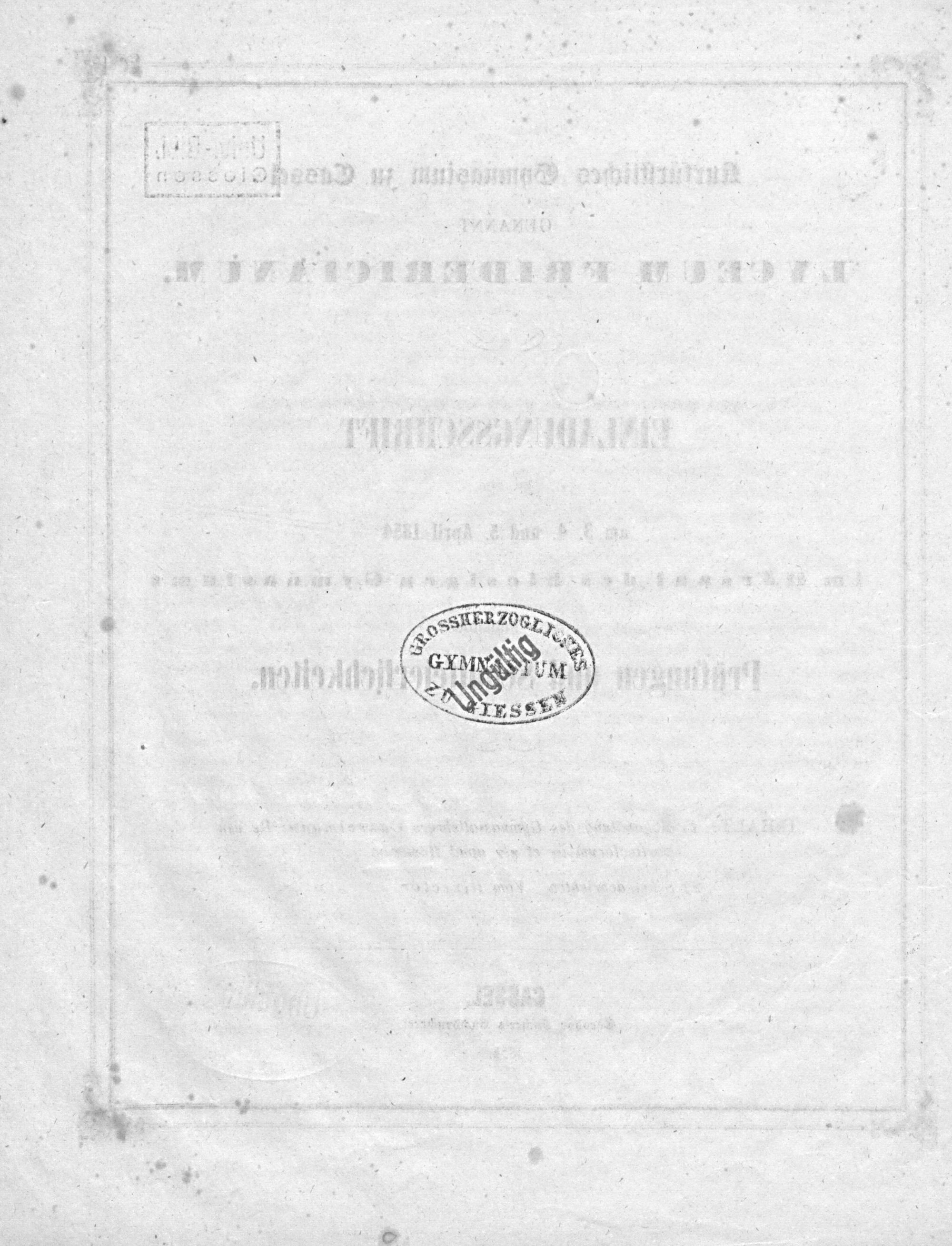 Einladungsschrift zu den am ... im Hörsaal des Gymnasiums statt findenden Prüfungen und Schulfeierlichkeiten
