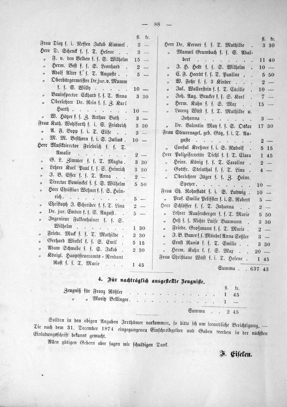 Sollten in den obigen Angaben Irrthümer vorkommen, ſo bitte ich um freundliche Berichtigung.— Die nach dem 31. December 1874 eingegangenen Einſchreibgelder und Gaben werden in der nächſten Einladungsſchrift bekannt gemacht.
