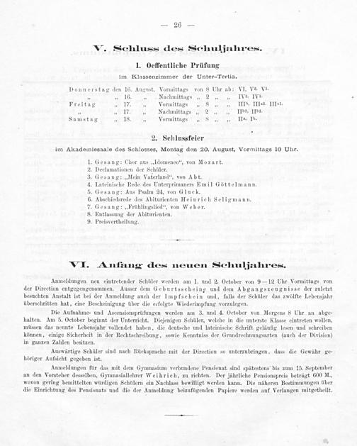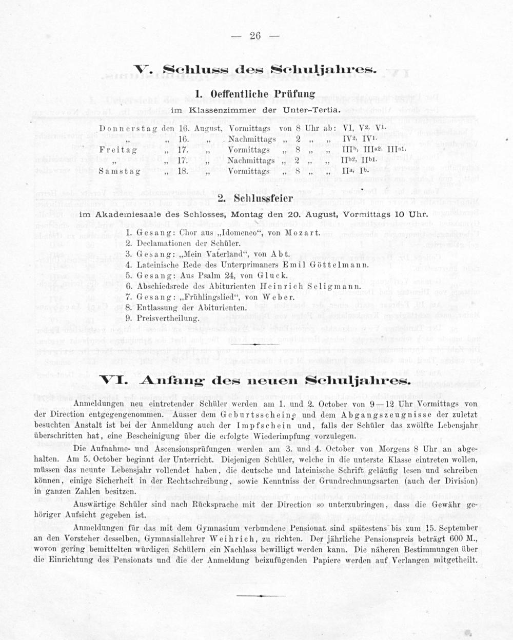 . Abschiedsrede des Abiturienten Heinrich Seligmann. Gesang:„Frühlingslied“, von Weber.