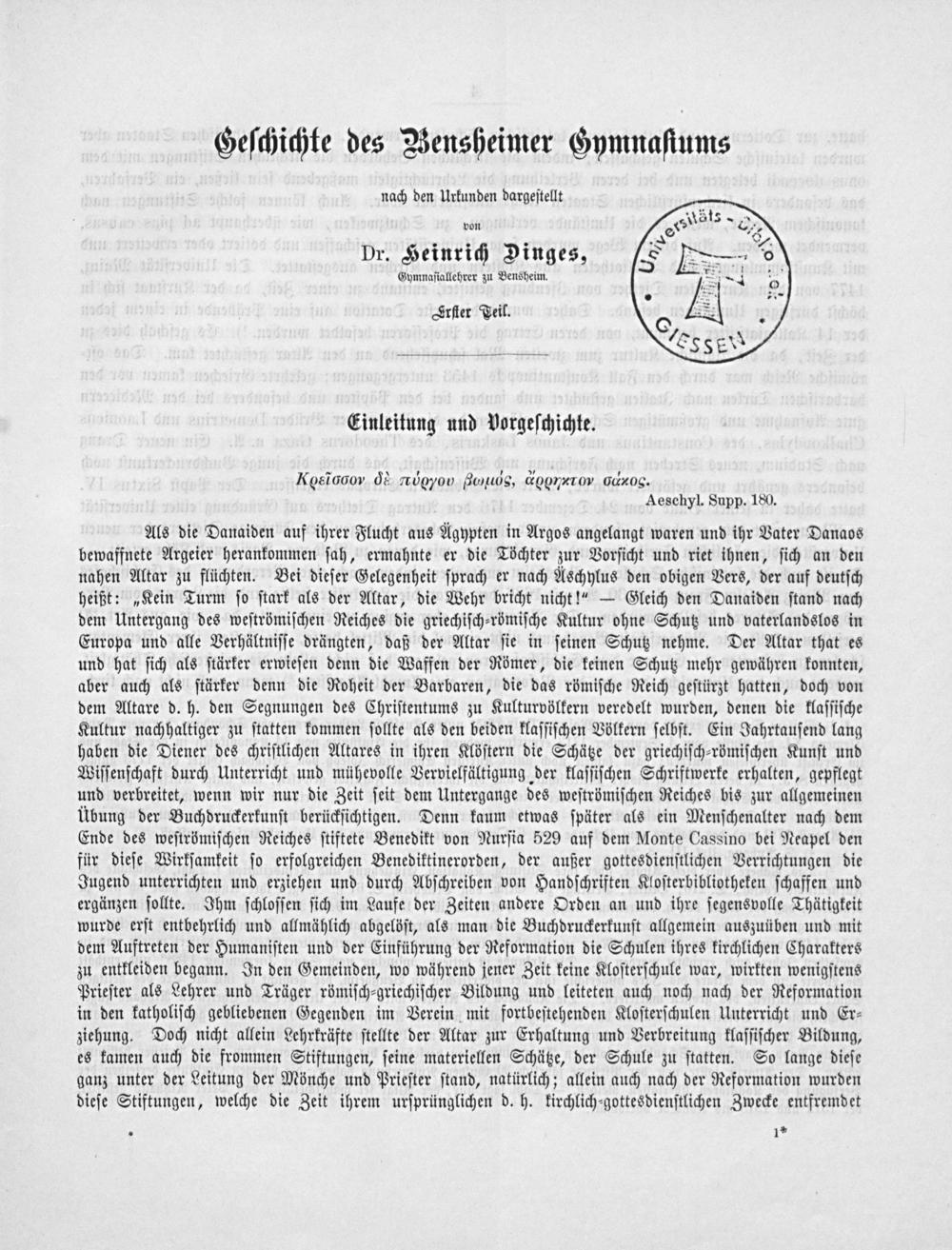 Gymnaſiallehrer zu Bensheim. Irſter Teil.