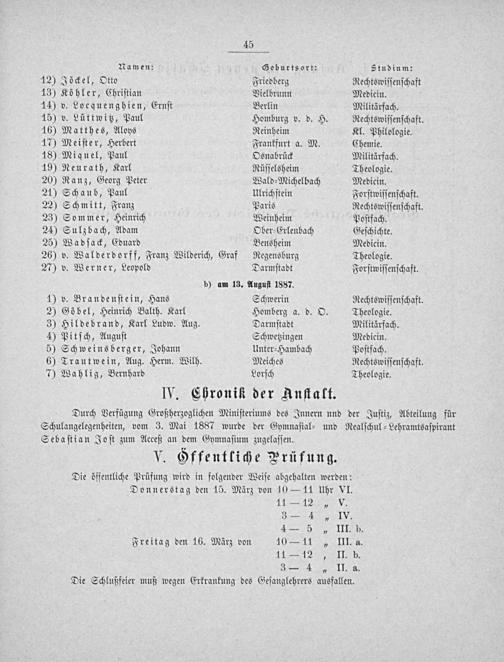 Durch Verfügung Großherzoglichen Miniſteriums des Innern und der Juſtiz, Abteilung für Schulangelegenheiten, vom 3. Mai 1887 wurde der Gymnaſial⸗ und Realſchul⸗Lehramtsaſpirant