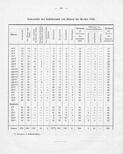 2 3 5 a sseeee astand Souahrhnlhittes Restamd 1wn. 1 5⸗. Aafanr paa⸗ i. 8 2 3 5 3,35 2 A 2 Sommerhalb- 5 2 S Sommer- [2 43 33 2 5 8— 80 85 3 41 * 3 ½ 5 jahres. 5 3 ³ halbjahres Ia H 14 10 4— 5 5 4— 14——— 14 Ia 0 15 8 7—— 9 5 1— 15——— 15 Ib H 12 7 5—— 5 5 2— 12——— 12 1b 0 17 12 5—— 11 4 2— 17— 1— 16 IIa H 17 11 6—— 8 7 2— 17——— 17 IIa 0 27 15 11 1— 13 11 3— 27— 4— 23 IIb H 24 20 3 1— 13 7 4— 24— 1— 23 IIb O 40 26 13 1— 23 9 7 1 40— 1— 39 IIIa H1 26 18 8—— 15 7 4— 26— 1— 25 IIIa H2 23 11 6 5 1 12 9 2— 23——— 23 IIIa 01 27 17 10—— 13 7 7— 27— 1— 26 IIIa 02 28 22 6—— 13 9 6— 28— 1— 27 IIIb H 44 35 9—— 30 9 5— 44— 1— 43 IIIb O1 25 21 2 2— 11 9 5— 25——— 25 IIIb 02 25 20 5—— 13 9 3— 25— 1— 24 IV H 47 40 7—— 24 13 9 1 47— 3— 44 IVO 33 27 5— 1 15 13 4 1 33— 1— 32² VH 41 35 3 3— 19 15 6 1 41——— 41 VO 44 38 6—— 18 16 8 2 44——— 44 VIH 41 37 2 1 1 17 18 5 1 41——— 41 VIO 38 34 4—— 17 14 6 1 38— 3— 35 Vorschule. IH 31 27 3 1— 13 13 5— 31— 1— 30 1⁰ 37 37——— 14 11 9 3 37— 1— 36 II H 41 41——— 11 21 9— 38 3 1— 40 II0 32 31 1—— 8 14 9 1 3²——— 32 III H 28 28——— 9 9 10— 28——— 28 IIIO 55 5⁵——— 18 25 11 1 5² 2— 53 Summe 832 683 V 131 15 3 3r) 294 148 V 13 826 6 24— 808