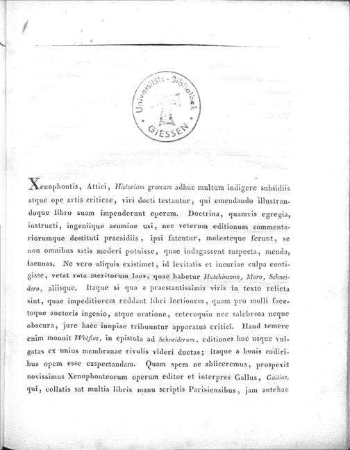 Nchophantis, Attici, Historiam graecam adhue multum indigere subsidiis atque ope artis criticae, viri docti testantur, qui emendando illustran- doque libro suam impenderunt operam. Doctrina, quamvis egregia, instructi, ingeniique acumine usi, nec veterum editionum commenta- riorumque destituti praesidiis, ipsi fatentur, molesteque ferunt, se non omnihbus satis mederi potuisse, quae indagassent suspecta, menda, lacunas. Ne vero aliquis existimet, id levitatis et incuriae culpa conti- gisse, vetat rata meritorum laus, quae habetur Hutchinsono, Moro, Schnei- dero, aliisque. Itaque si qua a praestantissimis viris in texto relicta sint, quae impeditiorem reddant libri lectionem, quam pro molli face- toque auctoris ingenio, atque oratione, ceteroquin nec salebrosa neque obscura, jure haeec inopiae tribuuntur apparatus critici. Haud temere enim monuit Wolſius, in epistola ad Schneiderum, editiones huc usque vul- gatas ex unius membranae rivulis videri ductas; itaque a bonis codici- bus opem esse exspectandam. Quam spem ne abiiceremus, prospexit novissimus Xenophonteorum operum editor et interpres Gallus, Gailius,