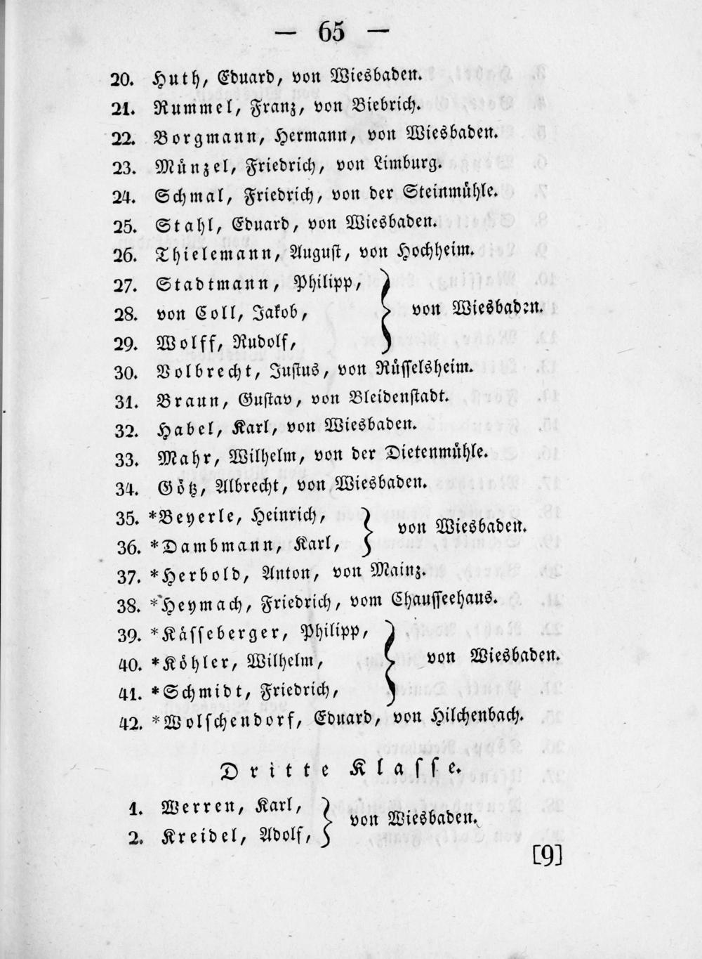 Schmal, Friedrich, von der Steinmuͤhle. Stahl, Eduard, von Wiesbaden. Thielemann, Auguſt, von Hochheim. Stadtmann, Philipp,