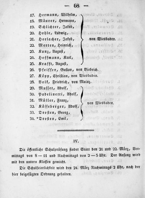 17. Hermann, Wilhelm, 18. Maͤurer, Hermann, 19. Schlichter, Jakob, 20. Hohle, Ludwig, 1lad. 21. Horlacher, Jakob, von Wiesbaden. 22. Merten, Heinrich,