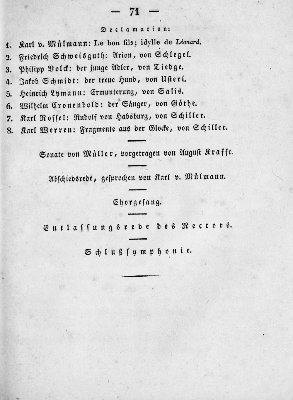 Abſchiedsrede, geſprochen von Karl v. Muͤlmann.