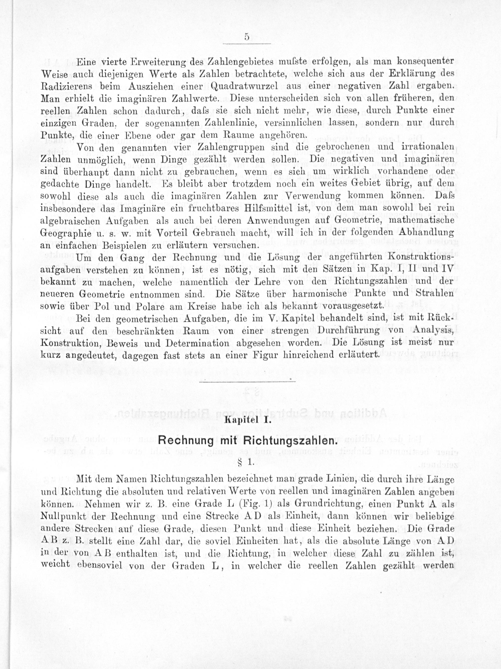 Kapitel I. Rechnung mit Richtungszahlen. § 1.