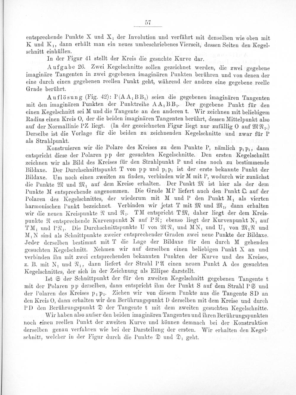 entsprechende Punkte X und XI der Involution und verfährt mit denselben wie oben mit K und Ki, dann erhält man ein neues umbeschriebenes Vierseit, dessen Seiten den Kegel- schnitt einhüllen.