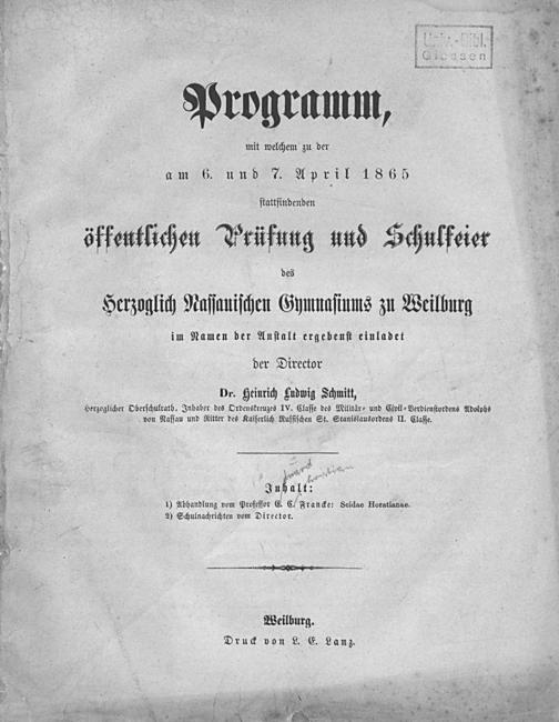 Herzoglich Naſſauiſchen Gymnaſiums zu Weilburg im Namen der Anſtalt ergebenſt einladet