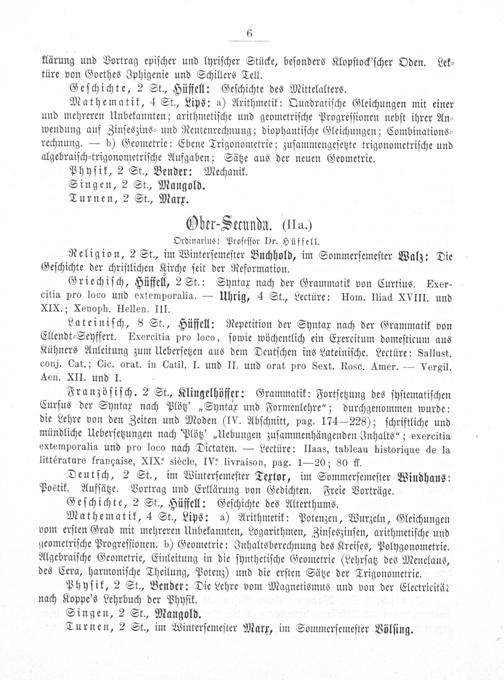 Ober-Secunda.(IIa.) Ordinarius: Profeſſor Dr. Hüffell.