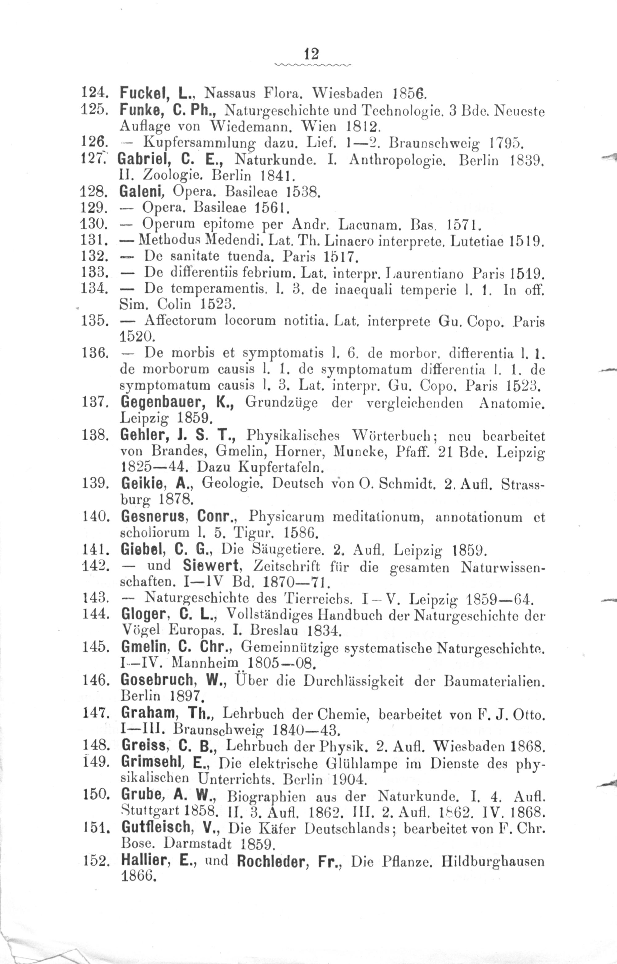 Gehler, J. S. T., Physikalisches Wörterbuch; neu bearbeitet von Brandes, Gmelin, Horner, Muncke, Pfaff. 21 Bde. Leipzig 1825— 44. Dazu Kupfertafeln.
