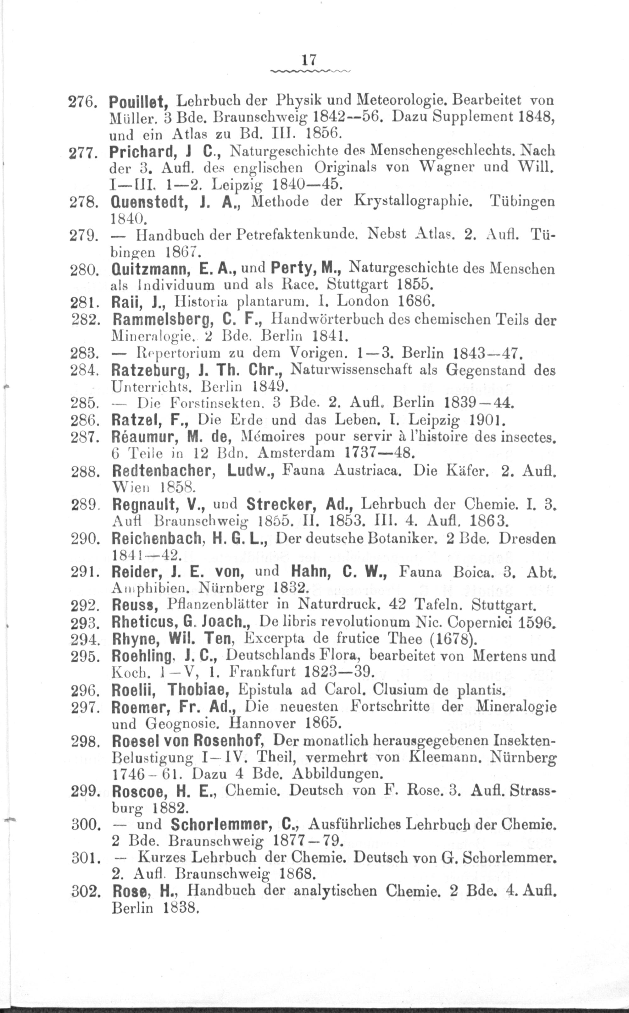 Regnault, V., und Strecker, Ad., Lehrbuch der Chemie. I. 3. Aufl Braunschweig 1855. II. 1853. III. 4. Aufl. 1863. Reichenbach, H. G. L., Der deutsche Botaniker. 2 Bde. Dresden 1841— 42.
