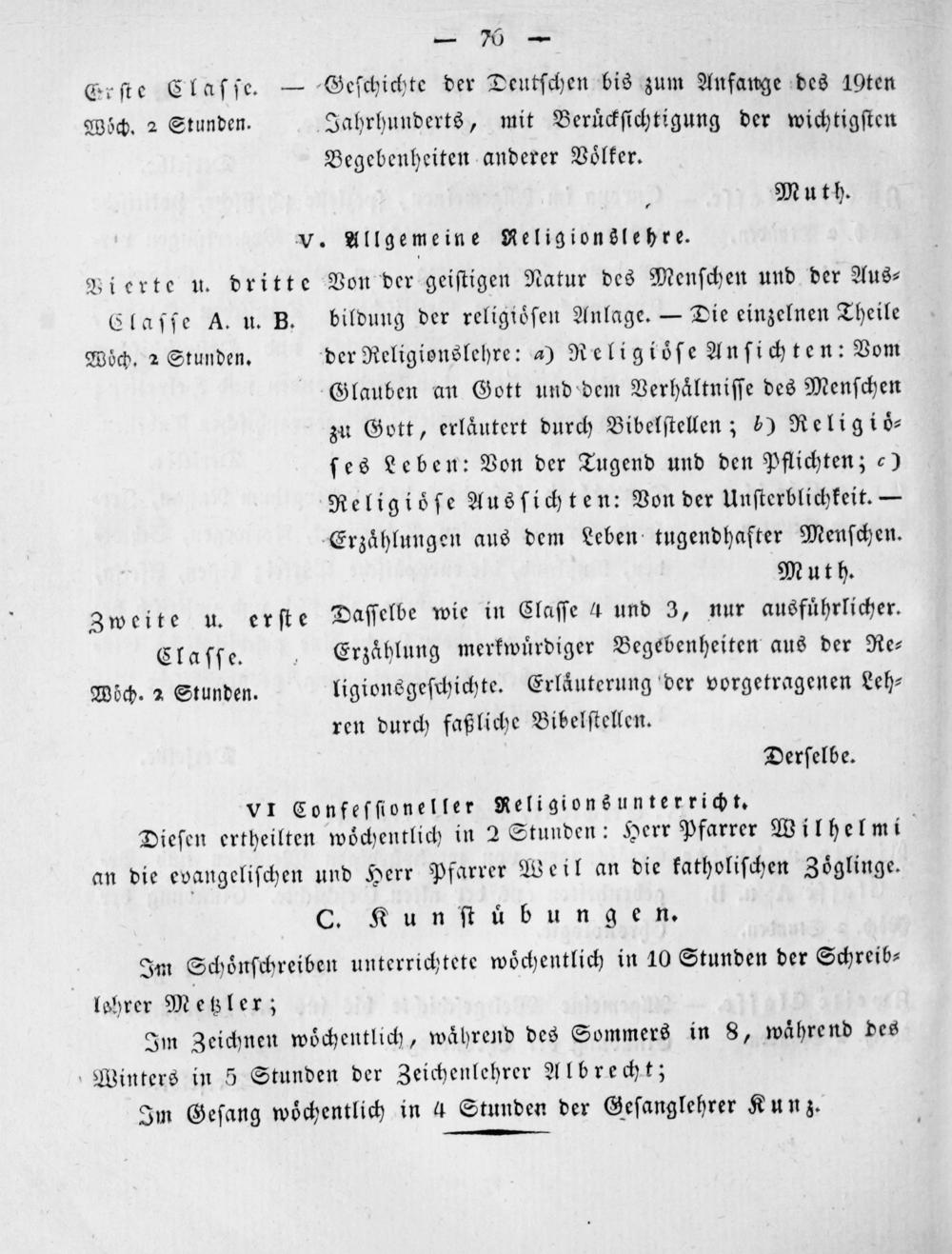 VI Confeſſioneller Religionsunterricht. Dieſen ertheilten woͤchentlich in 2 Stunden: Herr Pfarrer Wilhelmi