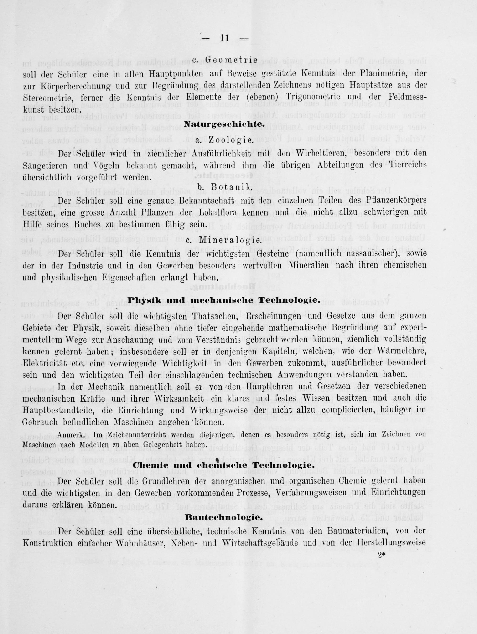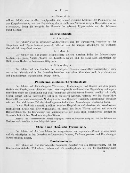 c. Geometrie soll der Schüler eine in allen Hauptpunkten auf Beweise gestützte Kenntnis der Planimetrie, der zur Körperberechnung und zur Begründung des darstellenden Zeichnens ntigen Hauptsätze aus der Stereometrie, ferner die Kenntnis der Elemente der(ebenen) Trigonometrie und der Feldmess- kunst besitzen.