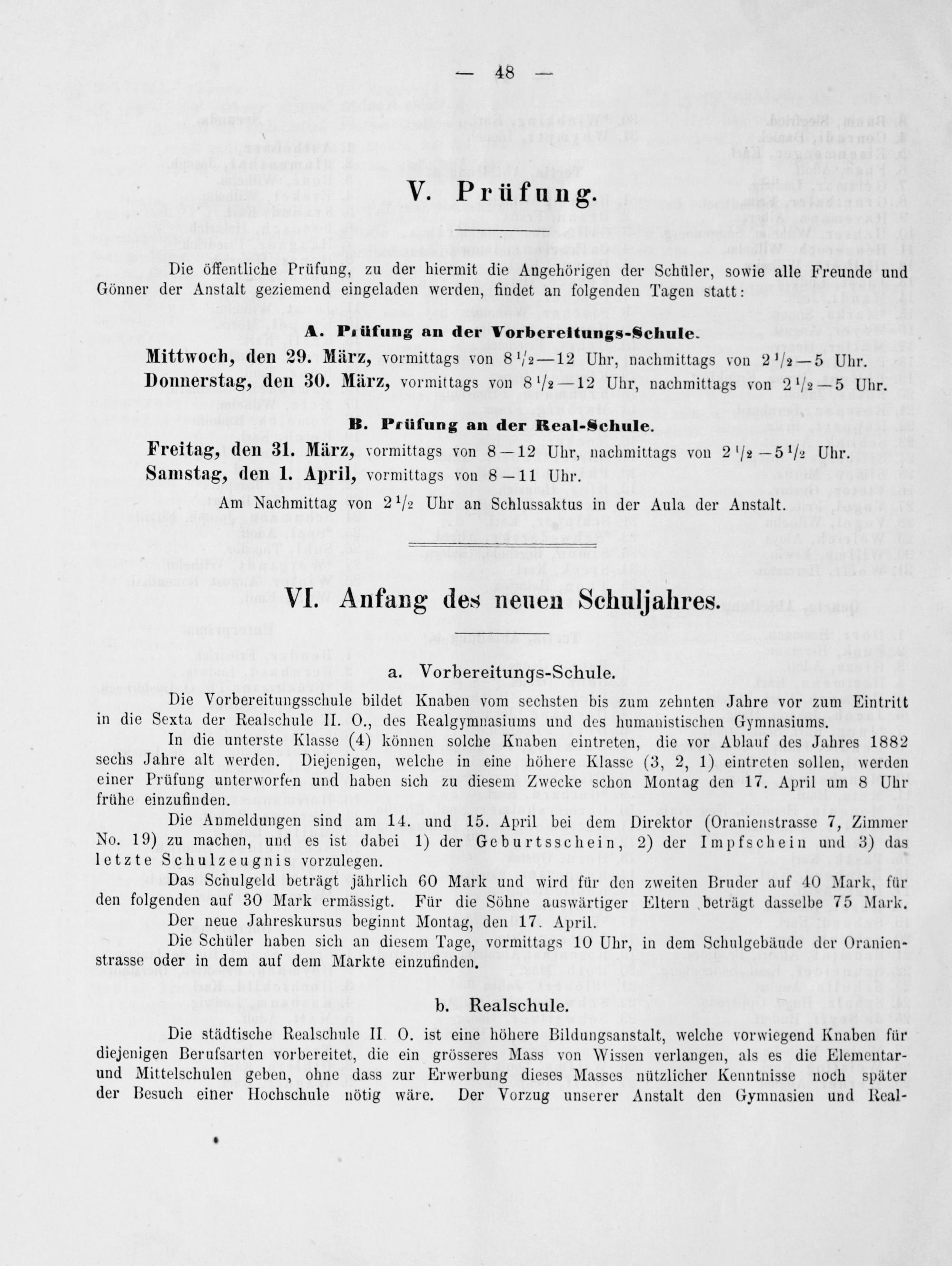 Die Vorbereitungsschule bildet Knaben vom sechsten bis zum zehnten Jahre vor zum Eintritt in die Sexta der Realschule II. O., des Realgymnasiums und des humanistischen Gymnasiums.