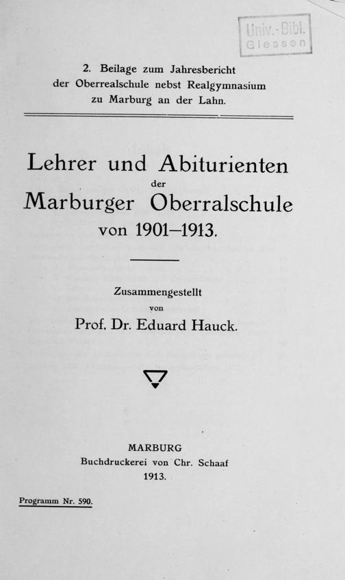 MARBURG Buchdruckerei von Chr. Schaaf 1913.