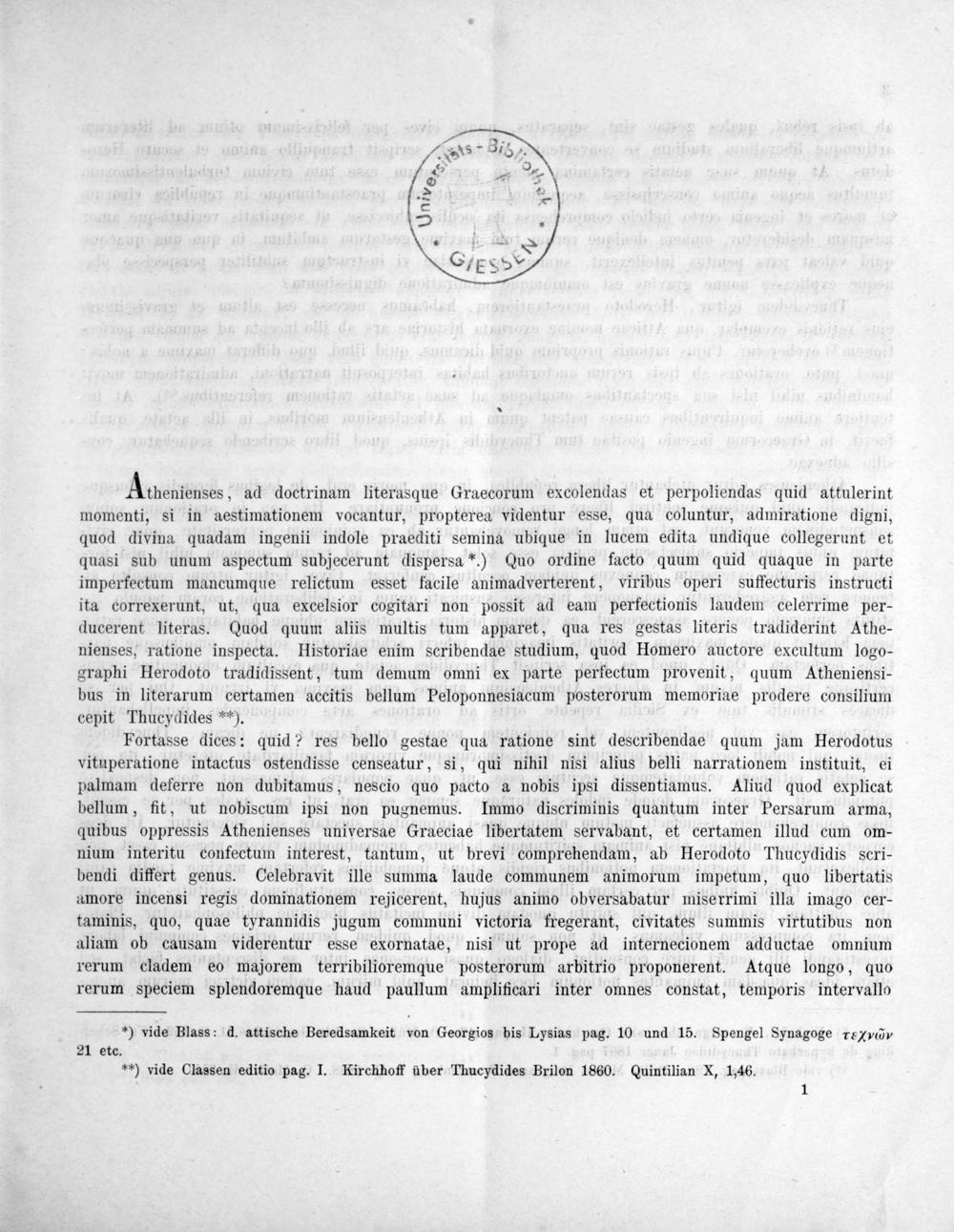 *) vide Blass: d. attische Beredsamkeit von Georgios bis Lysias pag. 10 und 15. Spengel Synagoge reε*νκκν 21 etc. **) vide Classen editio pag. I. Kirchhoff über Thucydides Brilon 1860. Quintilian X, 1,46.