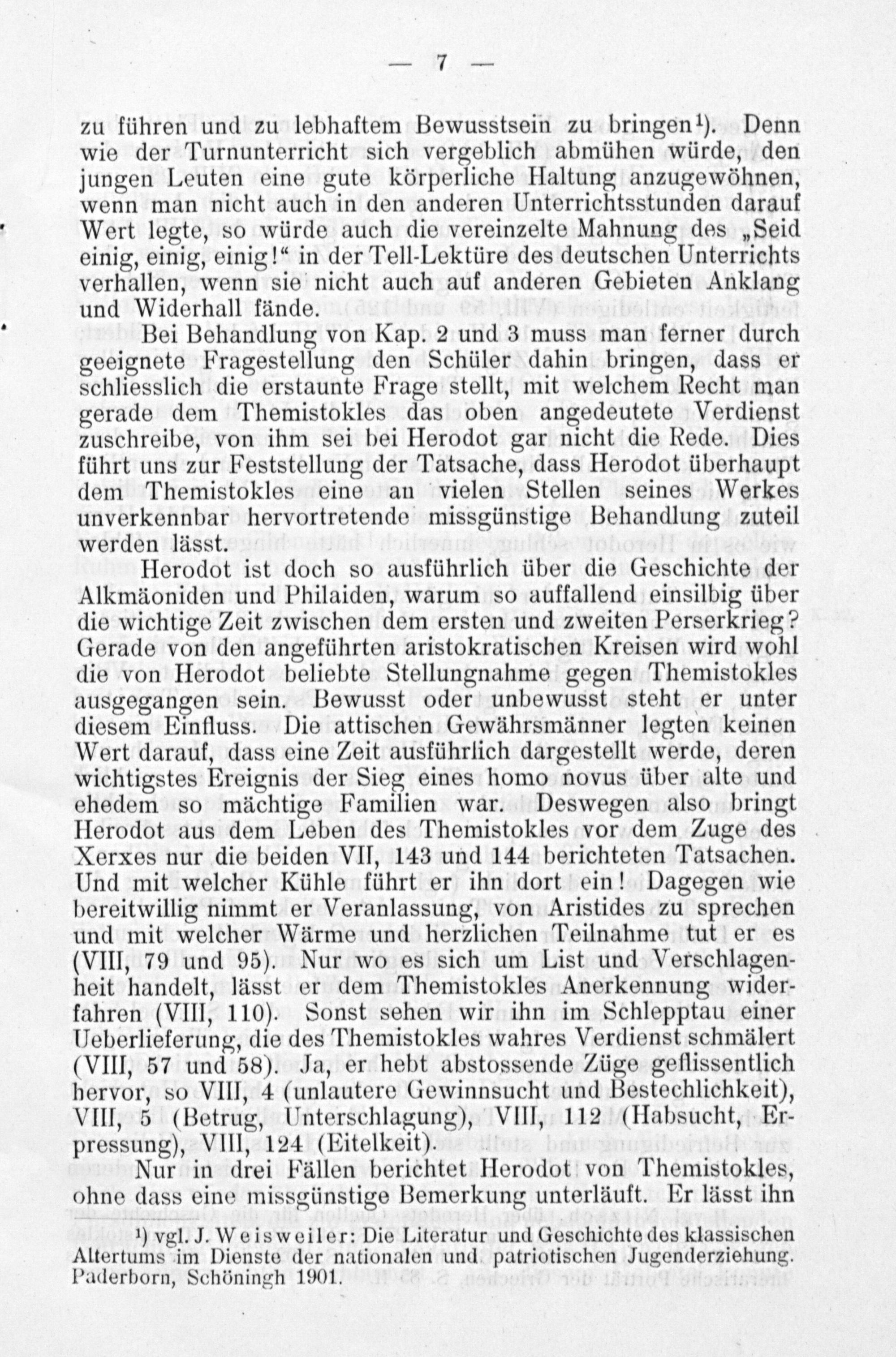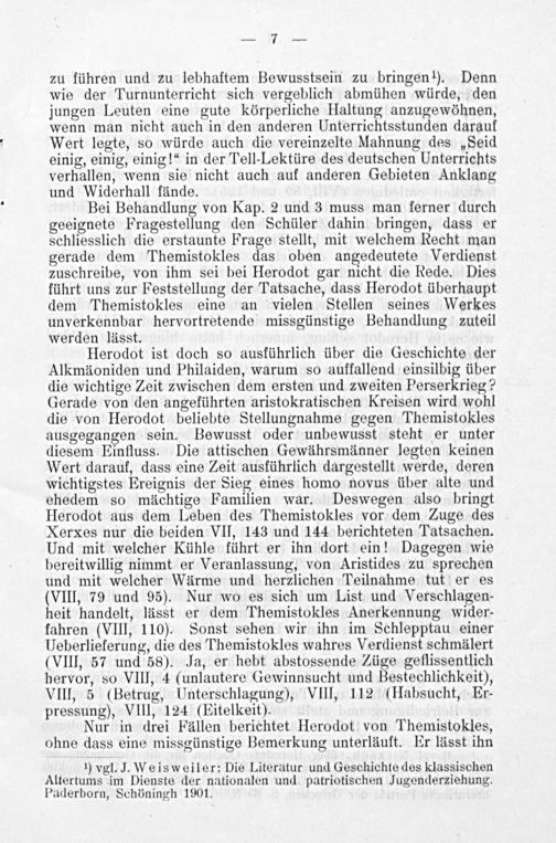 ¹) vgl. J. Weisweiler: Die Literatur und Geschichte des klassischen Altertums im Dienste der nationalen und patriotischen Jugenderziehung. Paderborn, Schöningh 1901.