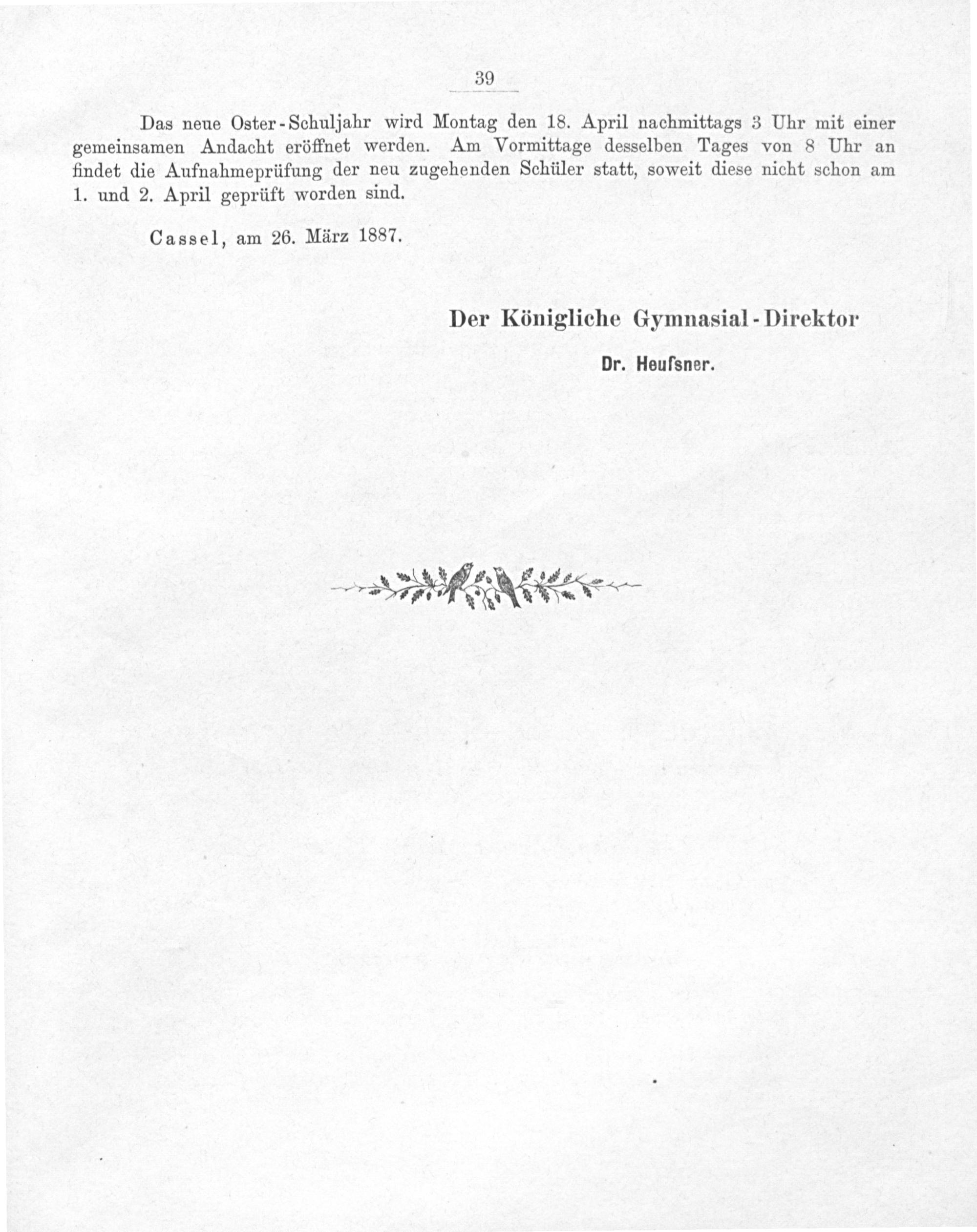 Cassel, am 26. März 1887.