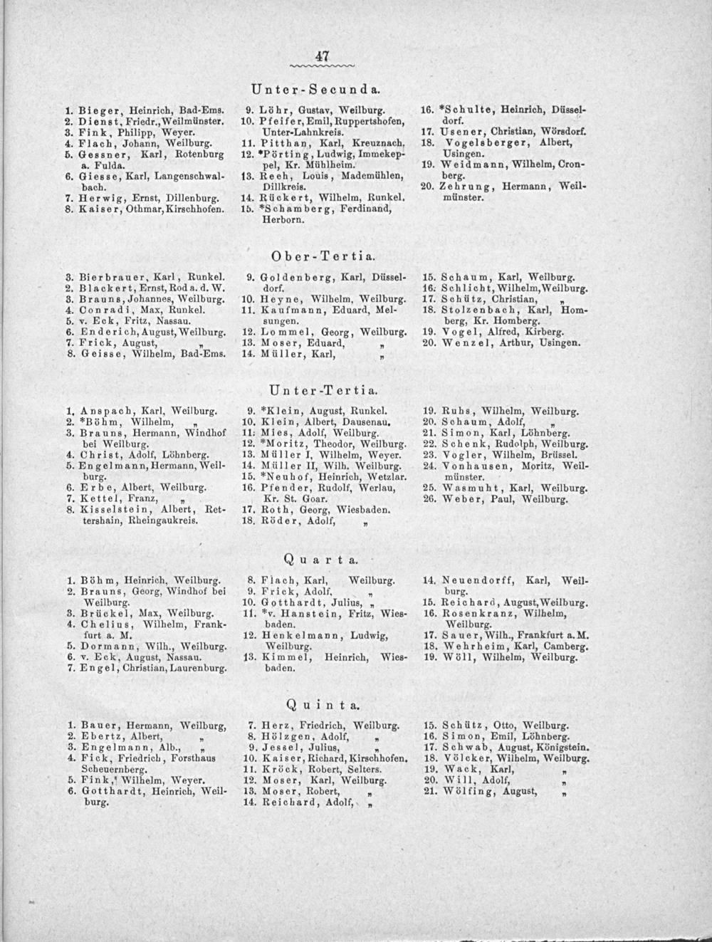 . Schütz, Otto, Weilburg. . Simon, Emil, Löhnberg. .Schwab, August, Königstein. . Völeker, Wilbelm, Weilburg.