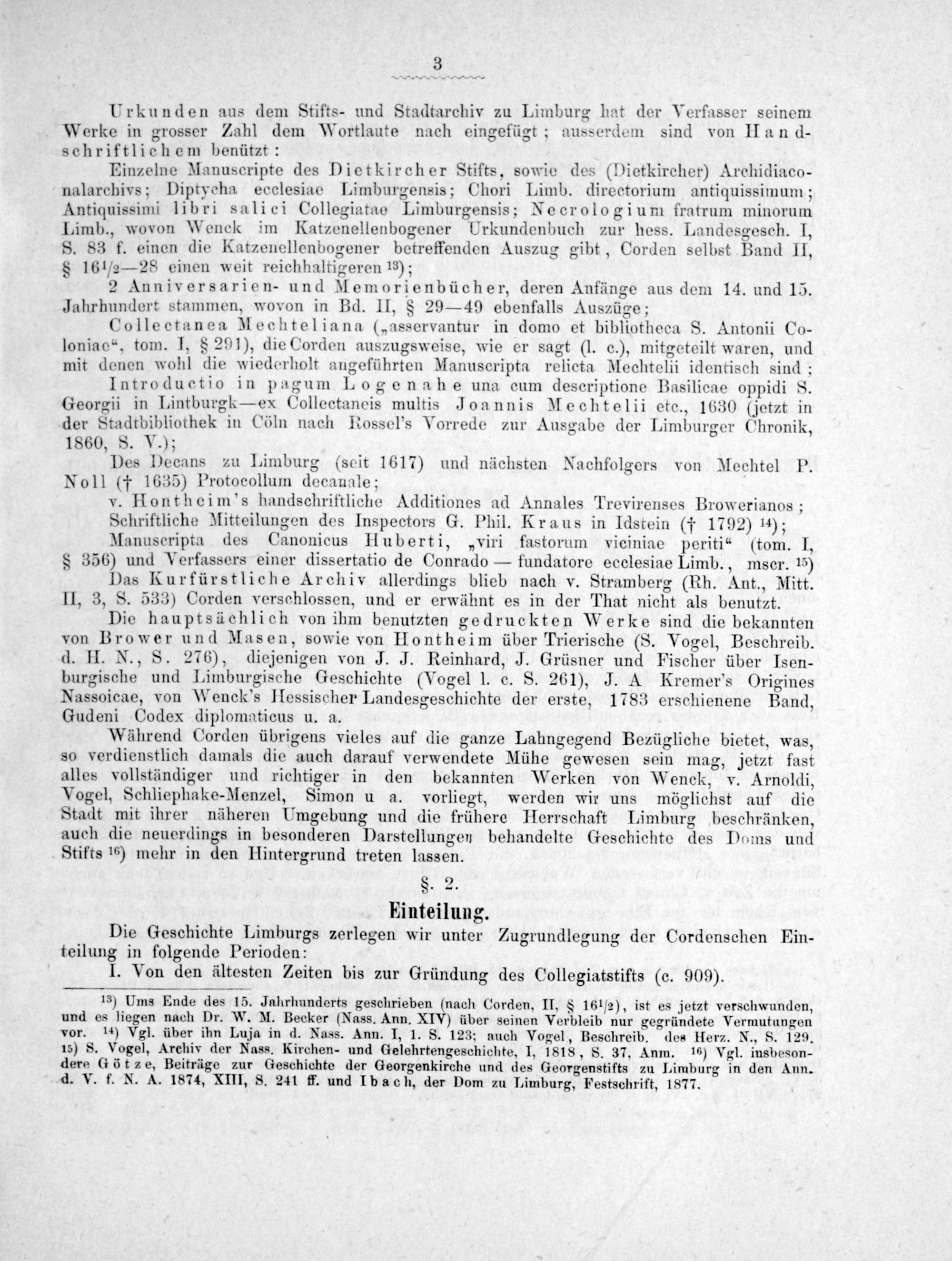 Urkunden aus dem Stifts- und Stadtarchiv zu Limburg hat der Verfasser seinem Werke in grosser Zahl dem Wortlaute nach eingefügt; ausserdem sind von Hand- schriftlichem benützt: