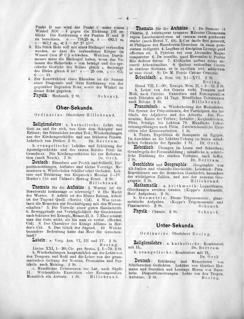 Ordinarius: Oberlehrer Bosing.