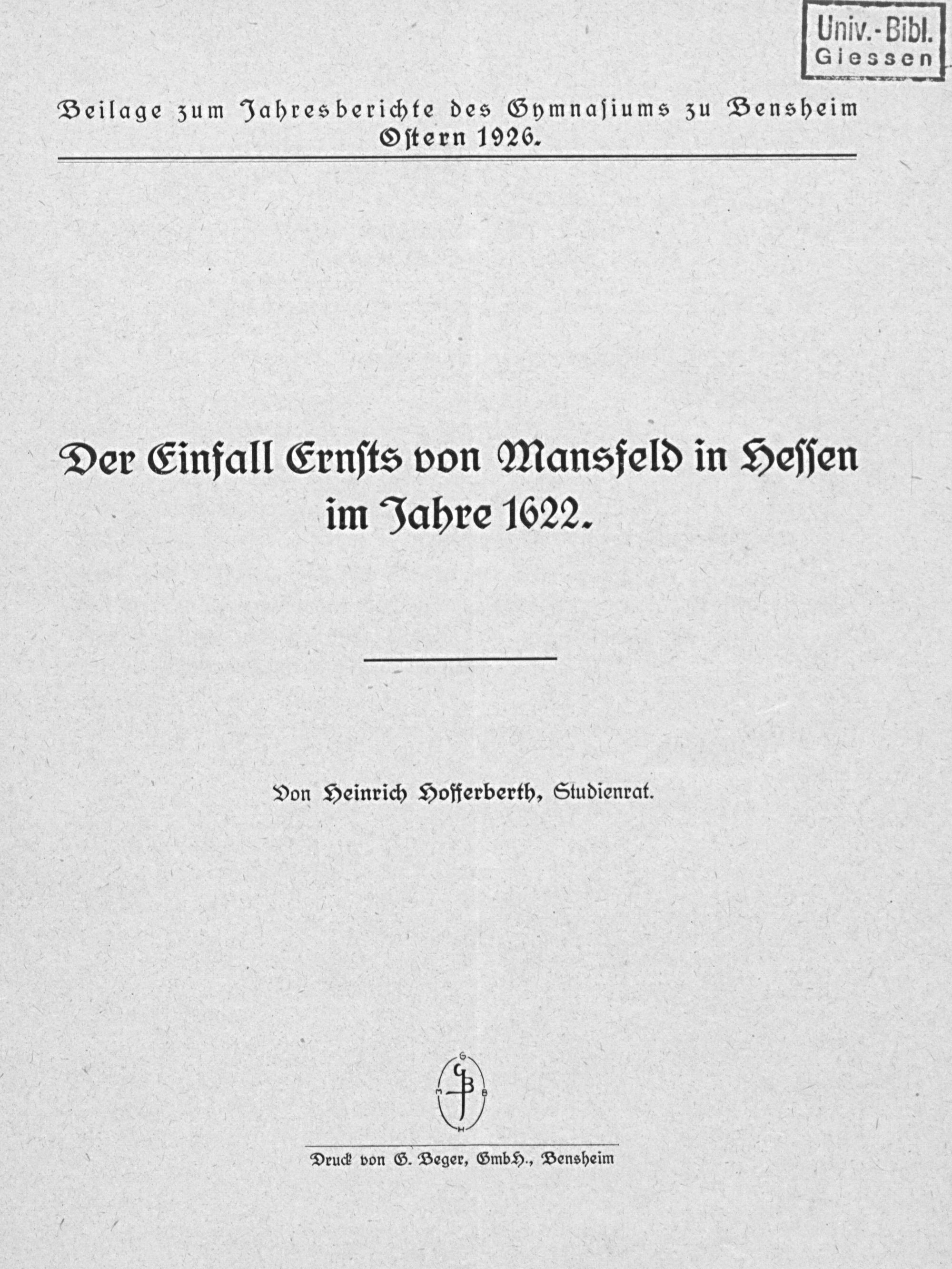Druck von G. Beger, GmbH., Bensheim