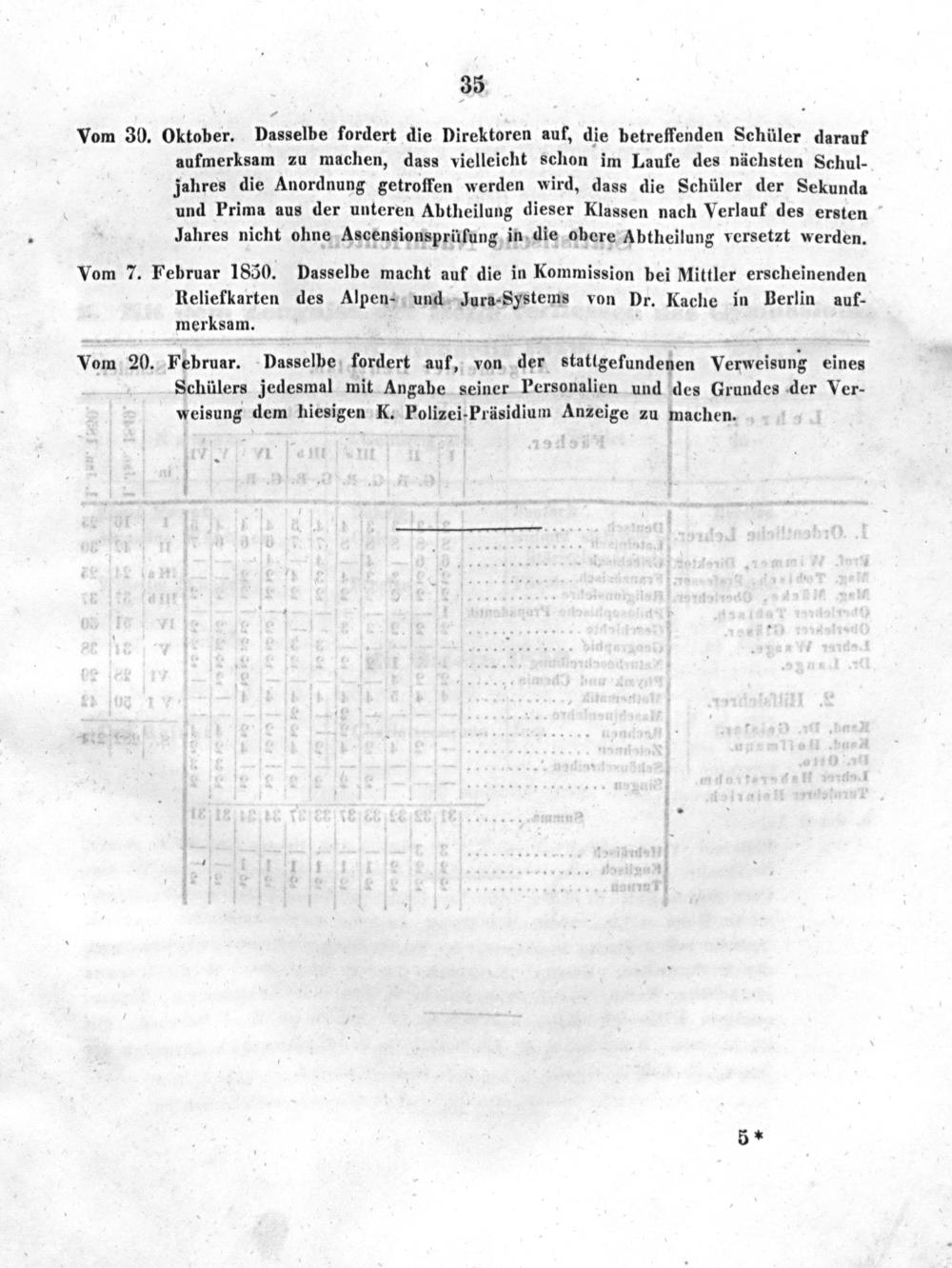 Schülers jedesmal mit Angabe seiner Personalien und des Grundes der Ver- weisung dem hiesigen K. Polizei Präsidium Anzeige zu machen.