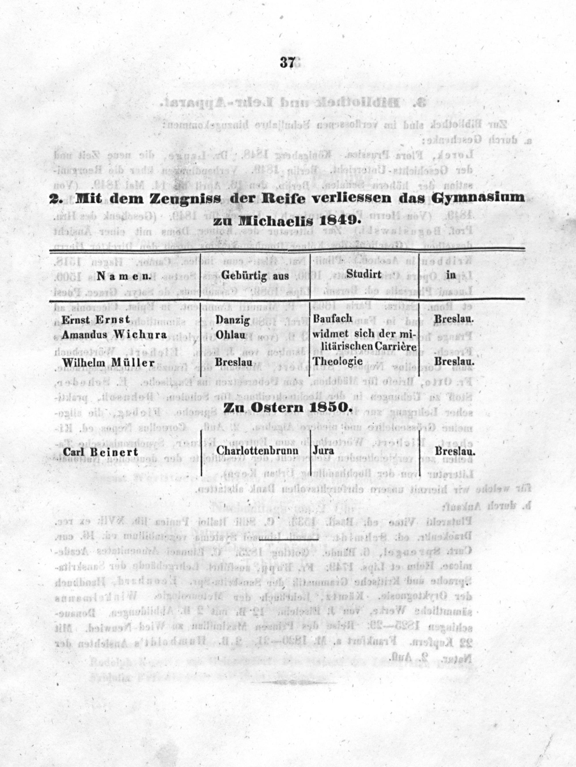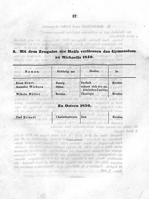 2. Mit dem Zeugniss der Reife verliessen das Gymnasinm zu Michaelis 1849.