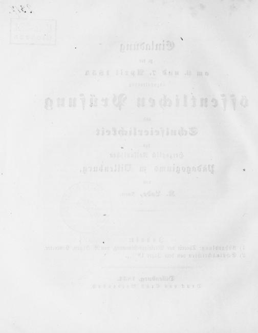 Einladung zu der am ... abzuhaltenden öffentlichen Prüfung und Schulfeierlichkeit des Herzoglich-Nassauischen Pädagogiums zu Dillenburg