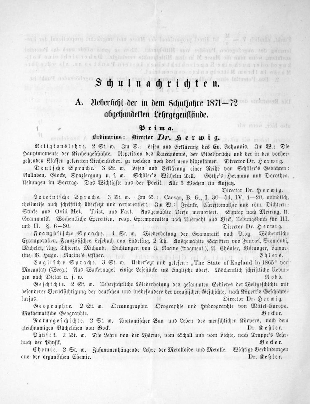 . Prima. Hrdinarius: Zirector Dr. Herwig.