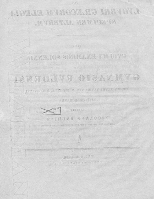 De Lvgvbri Graecorvm Elegia Specimen Altervm / rite celebranda indicit Nicolavs Bachivs