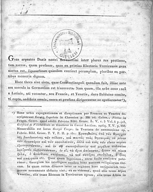 . rijc Saααανανκνοαιοσνσςι τν π᷑ Ʒενν, lzν αeνντ⁴α τοde Snoανod 0d dvον r6.ν ἀ&eροασσσ⁶[ς⁵ςσννQμαά ταν νQαανασο‿2Qαεεαν, d⁵³ αν τοςσ τ⁴υν X xvlov tsevevpnodero, d d eh ecPparelc roðũ ueενα᷑νμοωι αlov AXnoDund elcᷣισσeνενν, ty ls rà dyοx drtio, Trovy ra lua 5b2⁄α, 6 d⁴eν εμυωσ Oꝓε[ασφρ à rou 0G*0 Ouν εαeudα, 5 Aog * σm◻σ•φ αα etc. Quae quum legerimus, certe facile coniicere pote- rimus, Georgium hic intelligere eandem hane nostram reliquiarum the- cam. In quam autem diversas inter se regiones haec antiquiorum tem- porum monumenta abducta sint, ex eo videmus, quod alia trans Alpes Venetias, alia trans Rhenum in Trevirorum agrum, alia trans Albim in