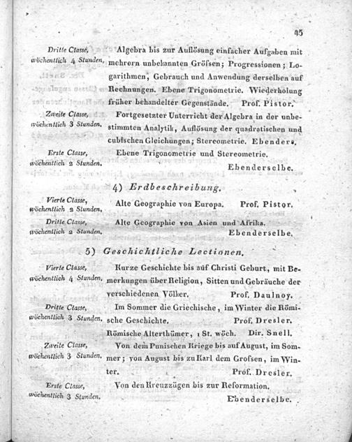 wöchenklich 3 Stunden. Sche Geschichte.: Prof. Dresler.