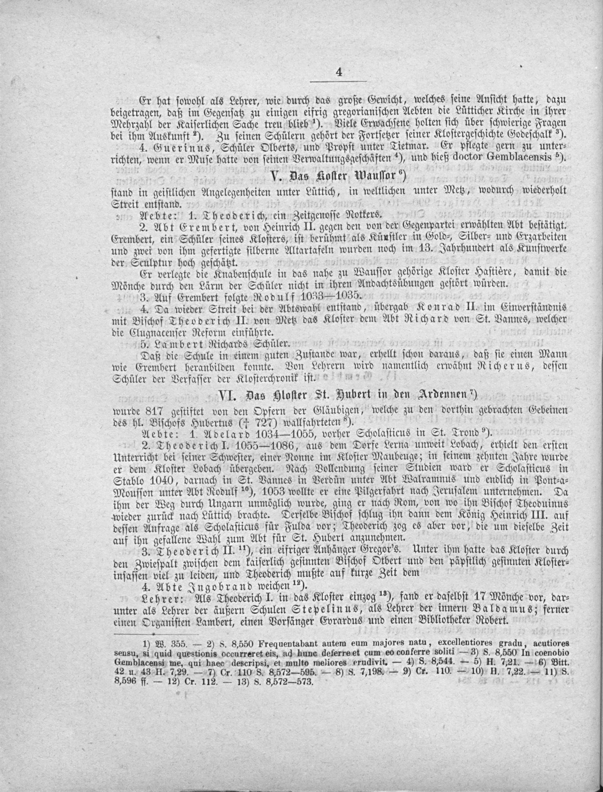 1) W. 355.— 2) S. 8,550 Frequentabant autem eum majores natu, excellentiores gradu, acutiores sensu, si quid questionis occurreret eis, ad hunc deferre et cum eo conferre soliti— 3) S. 8,550 In coenobio Gemblacensi me, qui haec descripsi, et multo meliores erudivit.— 4) 8. 8,544.— 5) H. 7,21.— 6) Bitt. 42 u. 43 H. 7,29.— 7) Cr. 110 S. 8,572— 595.— 8) S. 7,198.— 9) Cr. 110.— 10) H. 7,22.— 11) S. 8,596 ff.— 12) Cr. 112.— 13) S. 8,572— 573.
