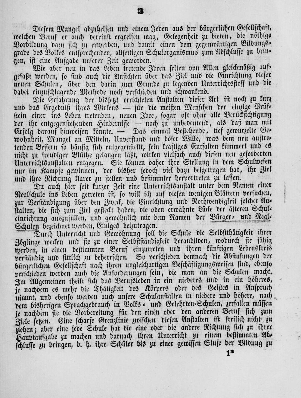 Da auch hier ſeit kurzer Zeit eine Unterrichtsanſtalt unter dem Namen einer Realſchule ins Leben getreten iſt, ſo will ich auf dieſen wenigen Blättern verſuchen, zur Verſtändigung über den Zweck, die Einrichtung und Nothwendigkeit ſolcher An⸗ ſtalten, die ſich zum Ziel geſteckt haben, die oben erwähnte Lücke der älteren Schul⸗ einrichtung auszufüllen, und gewöhnlich mit dem Namen der Bürger⸗ und Regl⸗ Schulen bezeichnet werden, Einiges beizutragen.—