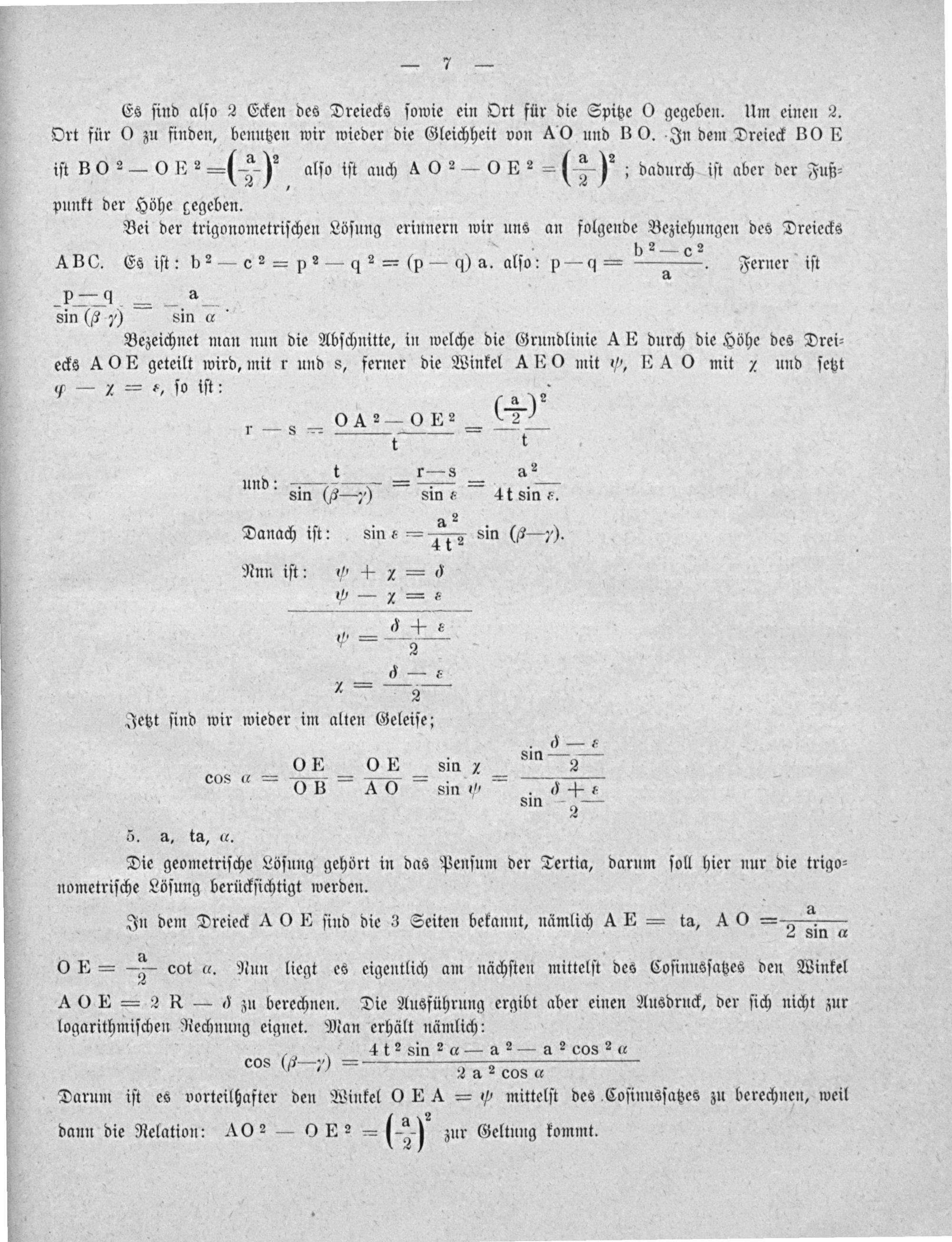 5. a, ta,. Die geometriſche Löſung gehört in das Penſum der Tertia, darum ſoll hier nur die trigo⸗ nometriſche Löſung berückſichtigt werden.