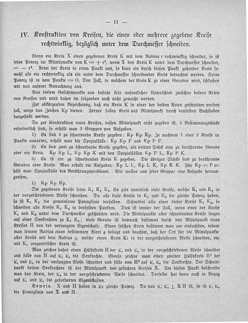 1) Es ſind 3 zu ſchneidende Kreiſe gegeben: Kp Kp Kp. Je nachdem 1 oder 2 Kreiſe in Punkte ausarten, erhält man die Spezialfälle: Rp Kp P und Kp P P.