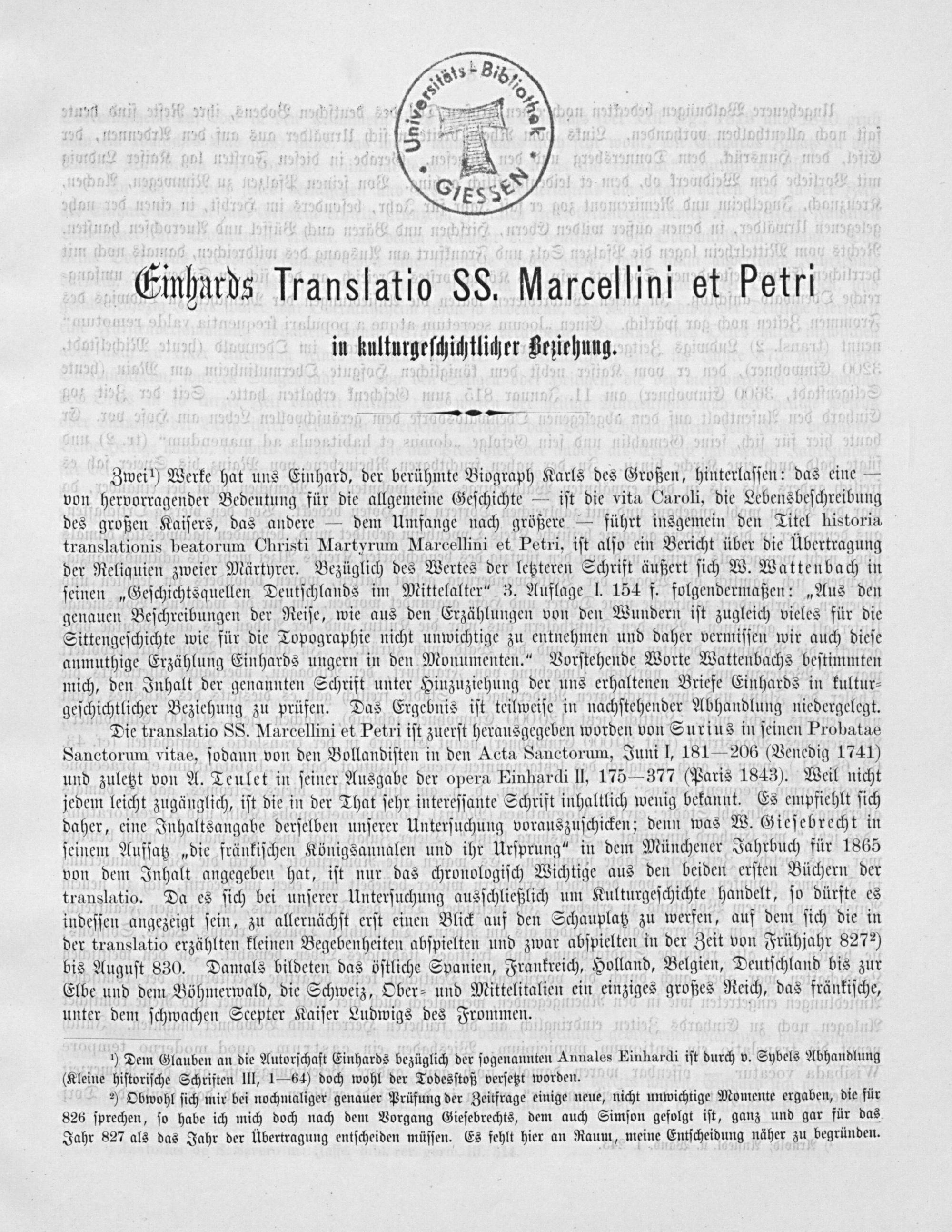 Einhards Translatio SS. Marcellini et Petri in kulturgeſchichtlicher Beziehung.