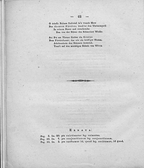 O träufle Balsam lindernd in's wunde Herz Des theuren Fürsten; trock'ne den Thränenquell In seinem Busen und verscheuche Ihm von der Stirne des Schmerzes Wolke.