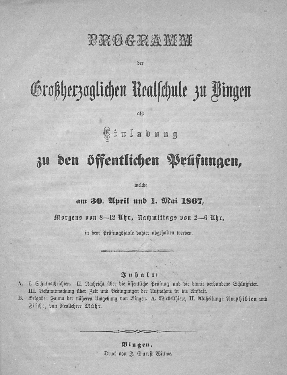 B. Beigabe: Fauna der näheren Umgebung von Bingen. A. Wirbelthiere, II. Abtheilung: Amphibien und Fiſche, von Reallehrer Mühr.