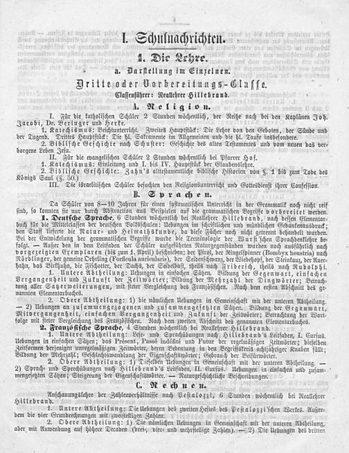 Dritte oder Vorbereitungs-Cluſſe. Claſſenführer: Reallehrer Hillebrand. 1