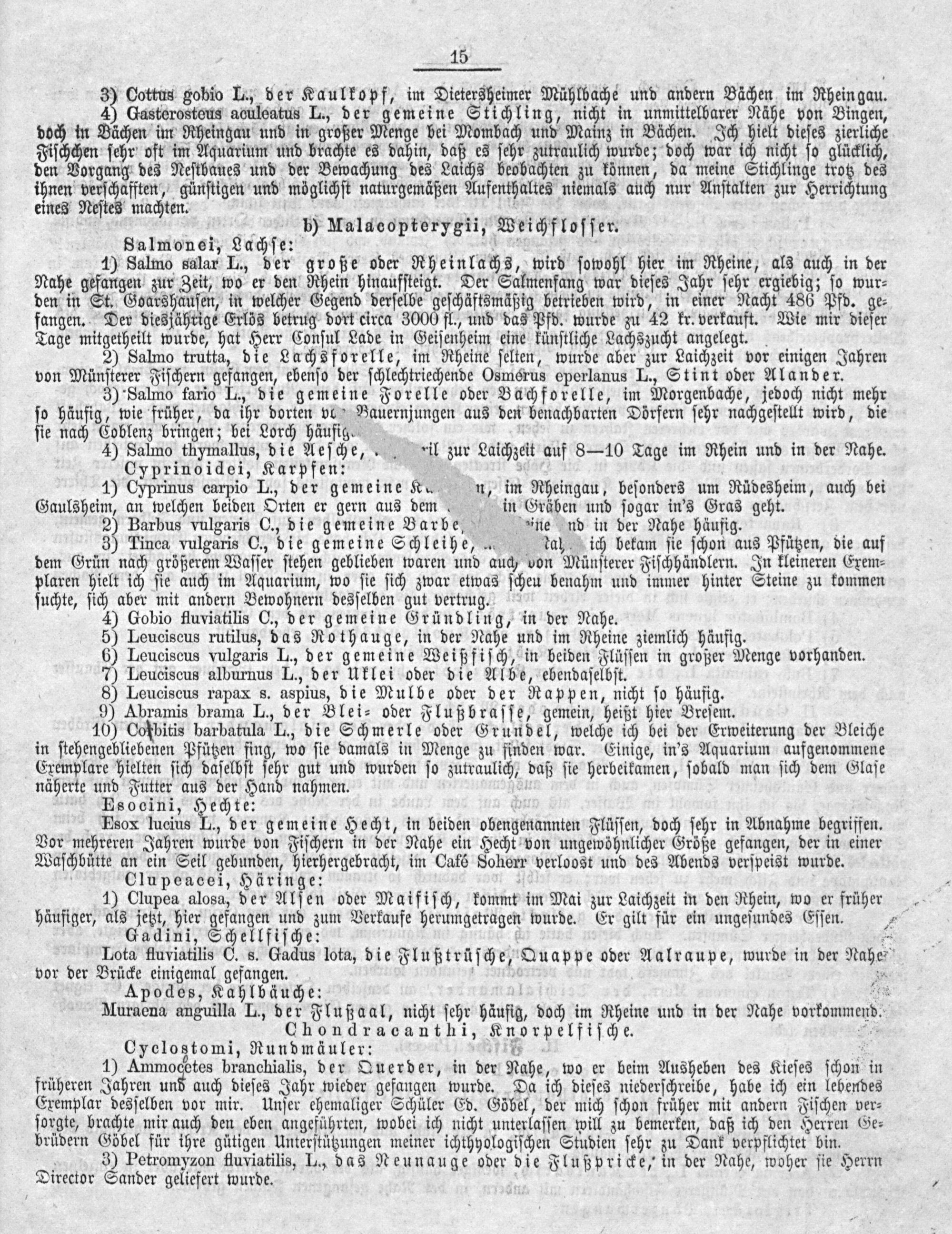 3) Cottus gobio L., der Kaulkopf, im Dietersheimer Mühlbache und andern Bächen im Rhein gau.