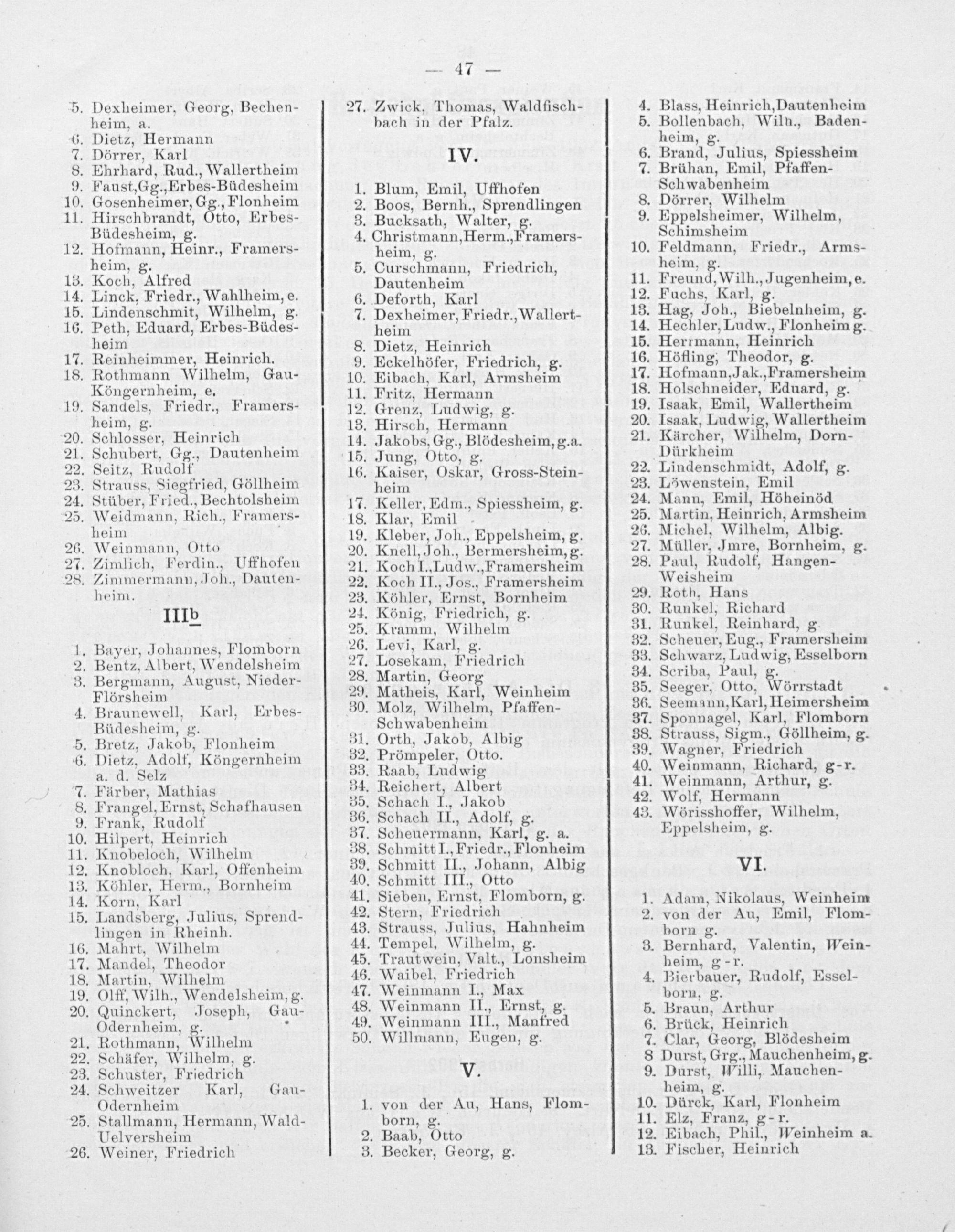 ;. Seemann,Karl, Heimersheim . Sponnagel, Karl, Flomborn . Strauss, Sigm., Göllheim, g. . Wagner, Friedrich