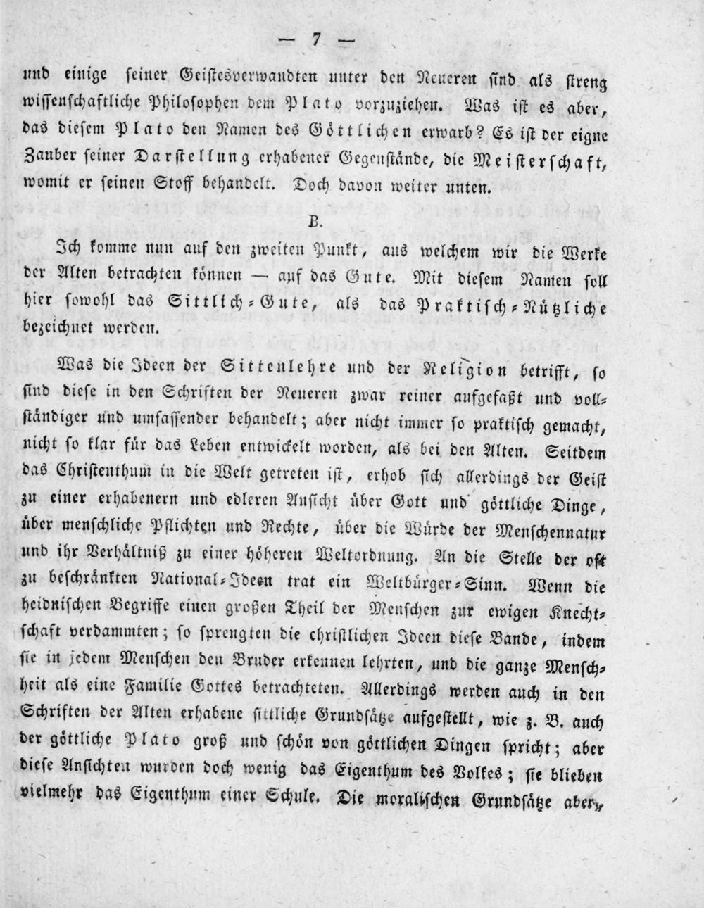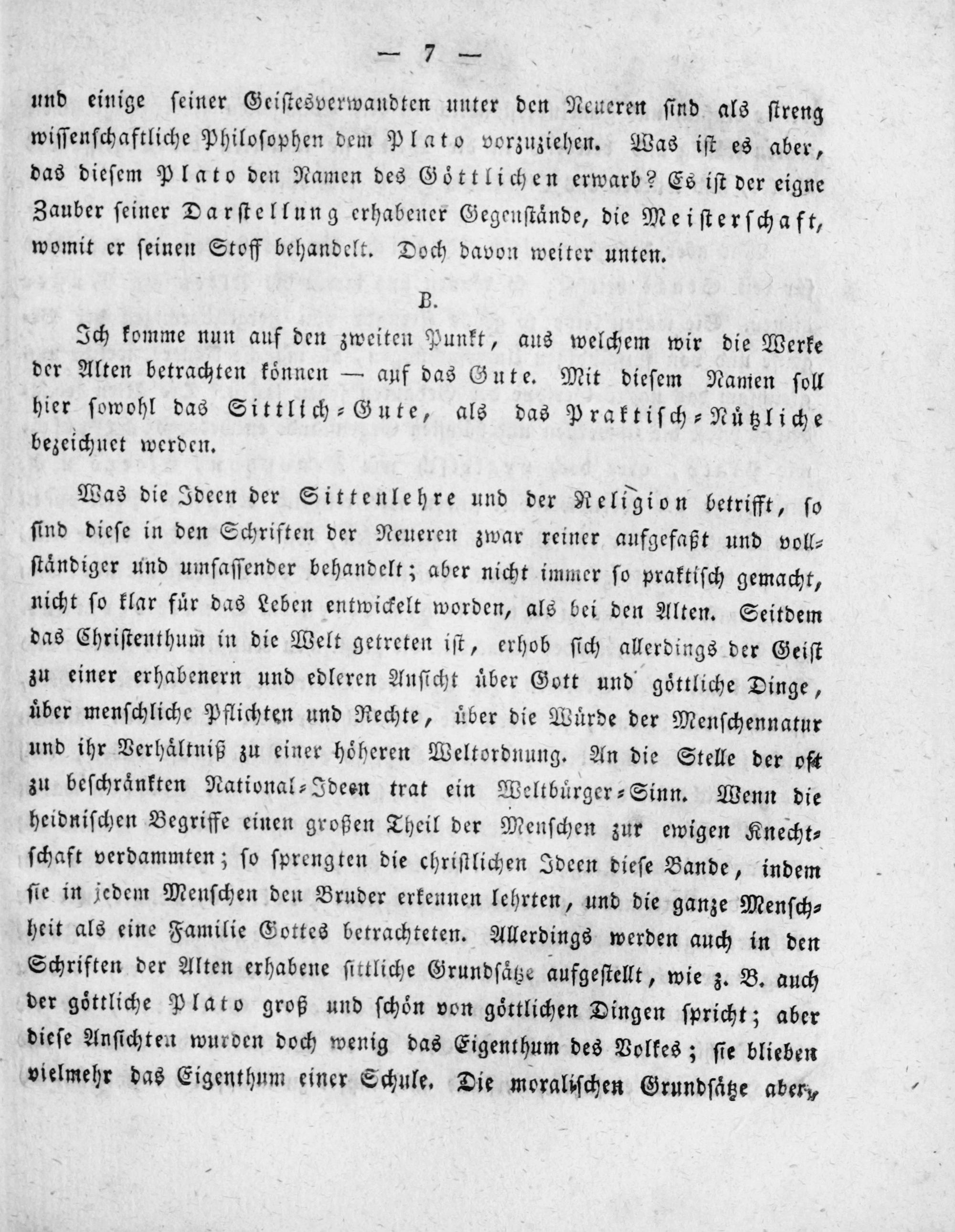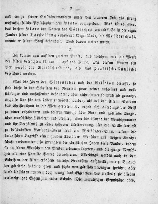 B. Ich komme nun auf den zweiten Punkt, aus welchem wir die Werke der Alten betrachten koͤnnen— auf das Gute. Mit dieſem Namen ſoll