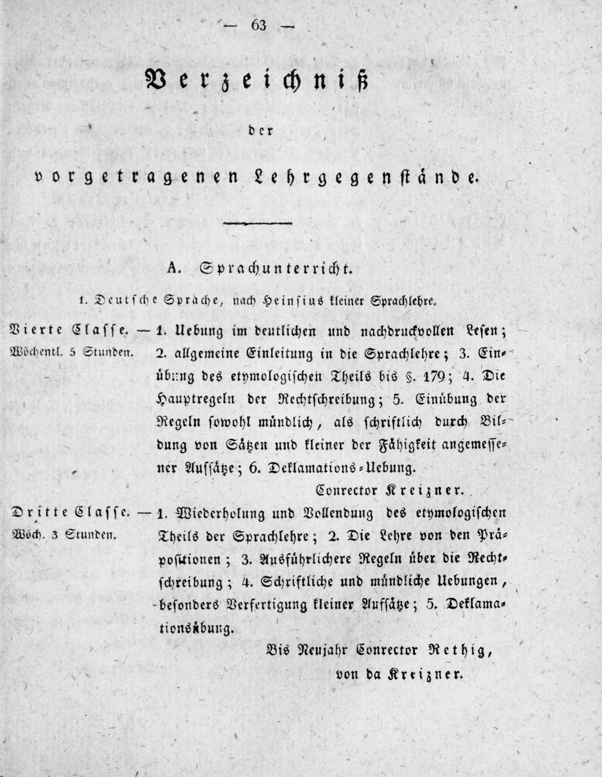 tionsübung. Bis Neujahr Conrector Rethig, von da Kreizner.