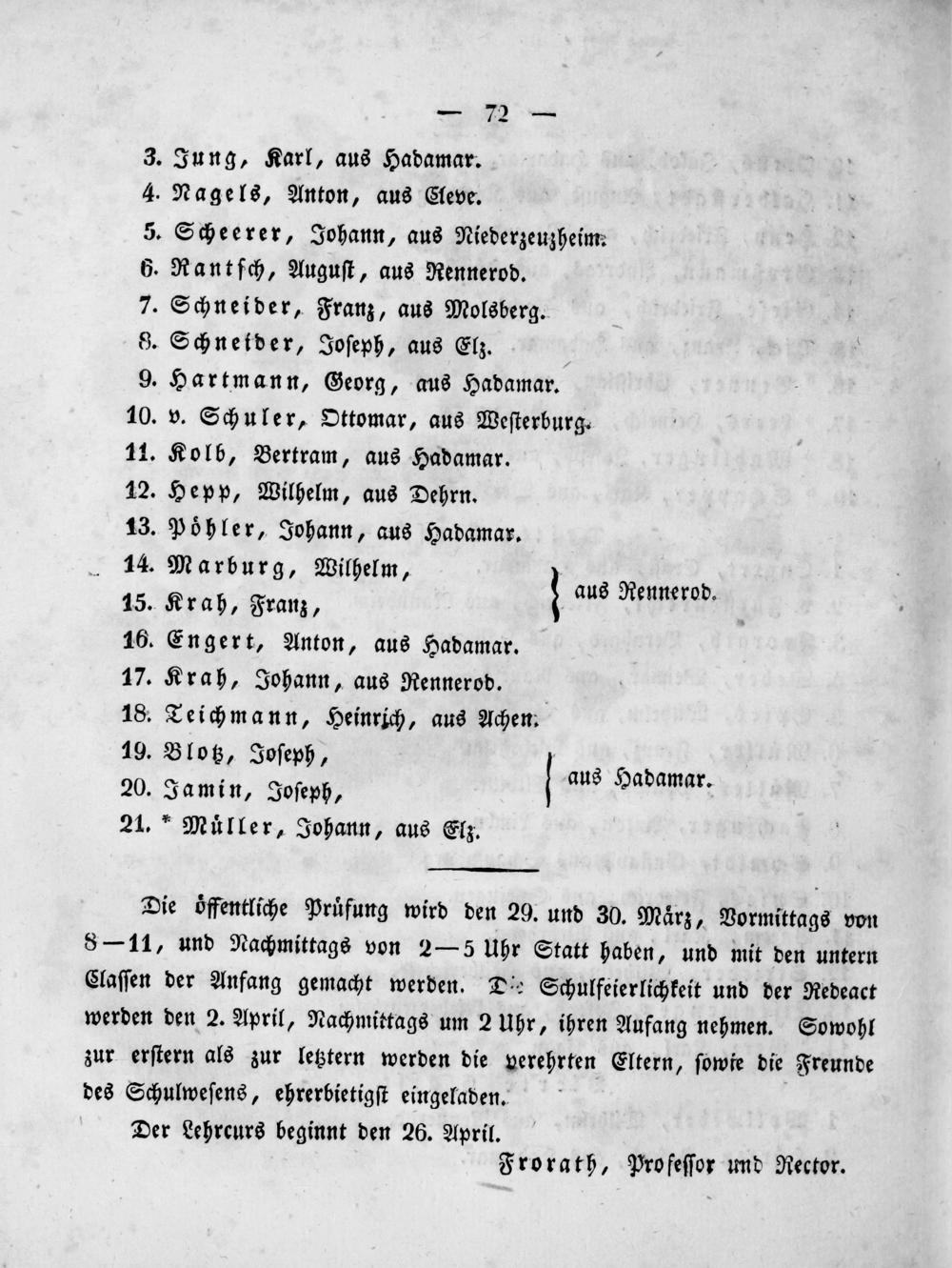 16. Engert, Anton, aus Hadamar. 17. Krah, Johann, aus Rennerod. 18. Teichmann, Heinrich, aus Achen. 19. Blotz, Joſeph,
