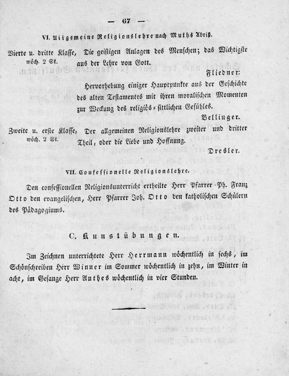 Den confeſſionellen Religionsunterricht ertheilte Herr Pfarrer Ph. Franz Otto den evangeliſchen, Herr Pfarrer Joh. Otto den katholiſchen Schuͤlern des Paͤdagogiums.