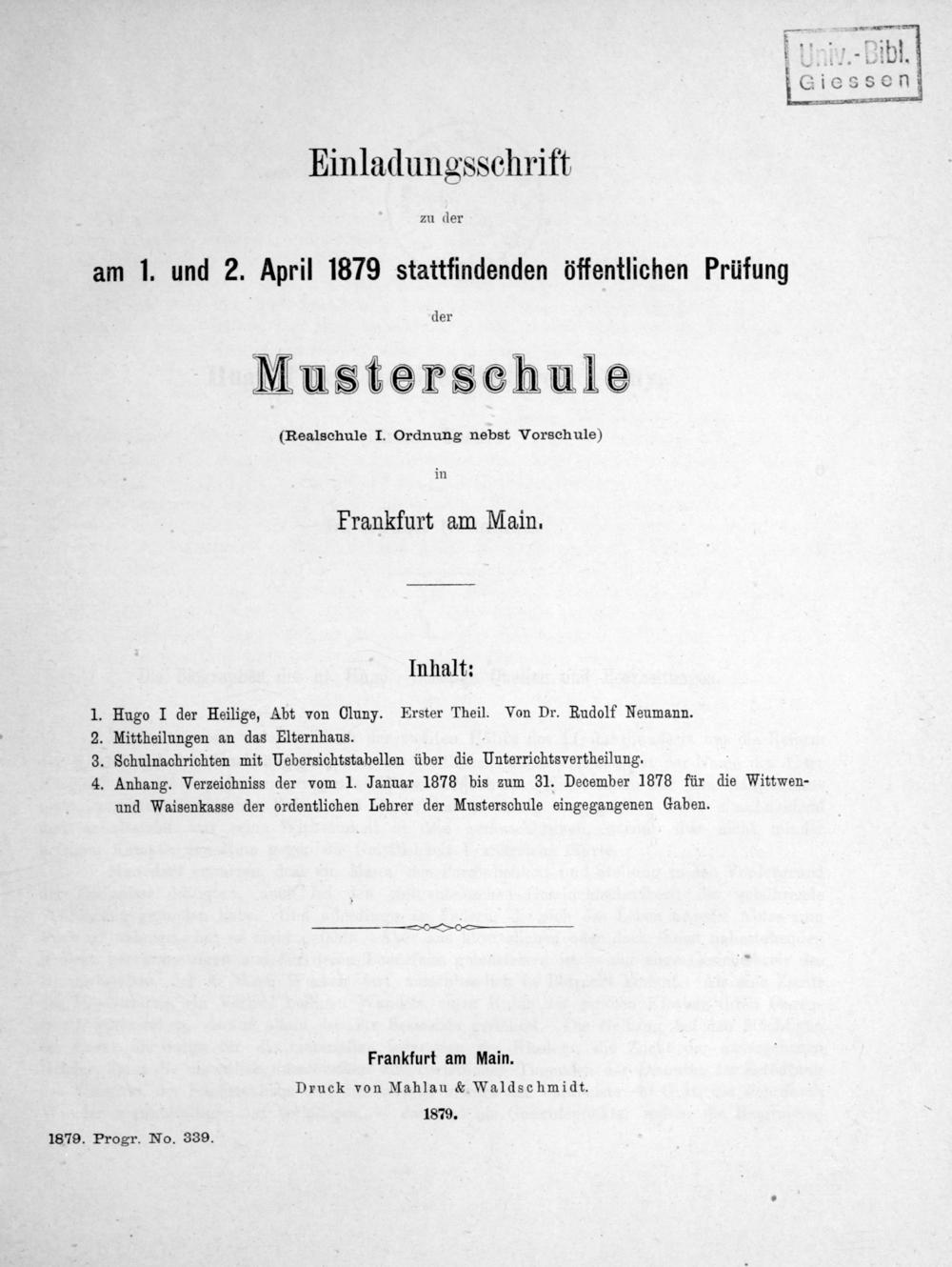 am 1. und 2. April 1879 stattfindenden öffentlichen Prüfung